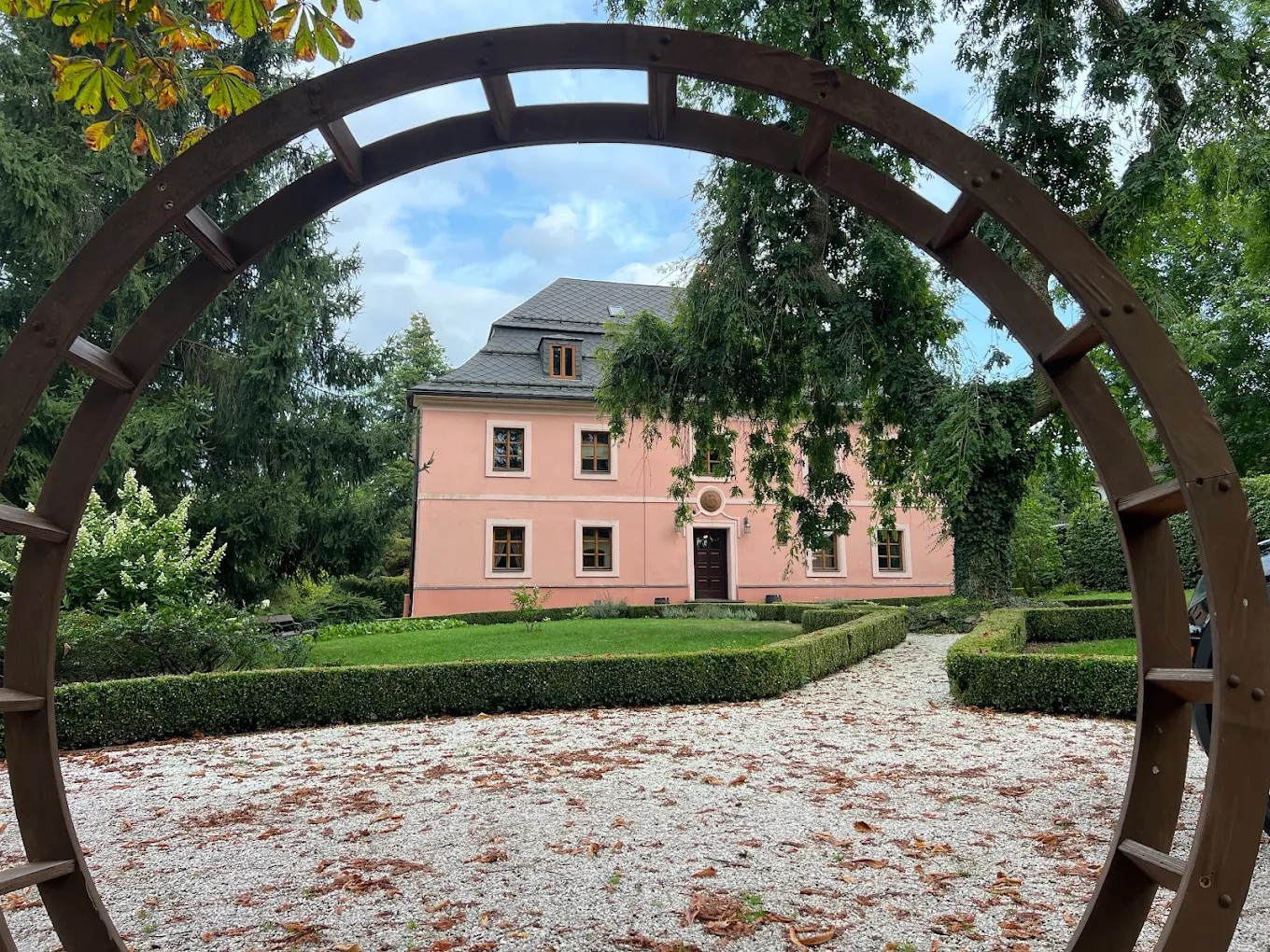 Obřad se bude konat v zámecké zahradě. Na hostinu se poté přesuneme pěšky do přibližně 200 metrů vzdáleného areálu hostince.